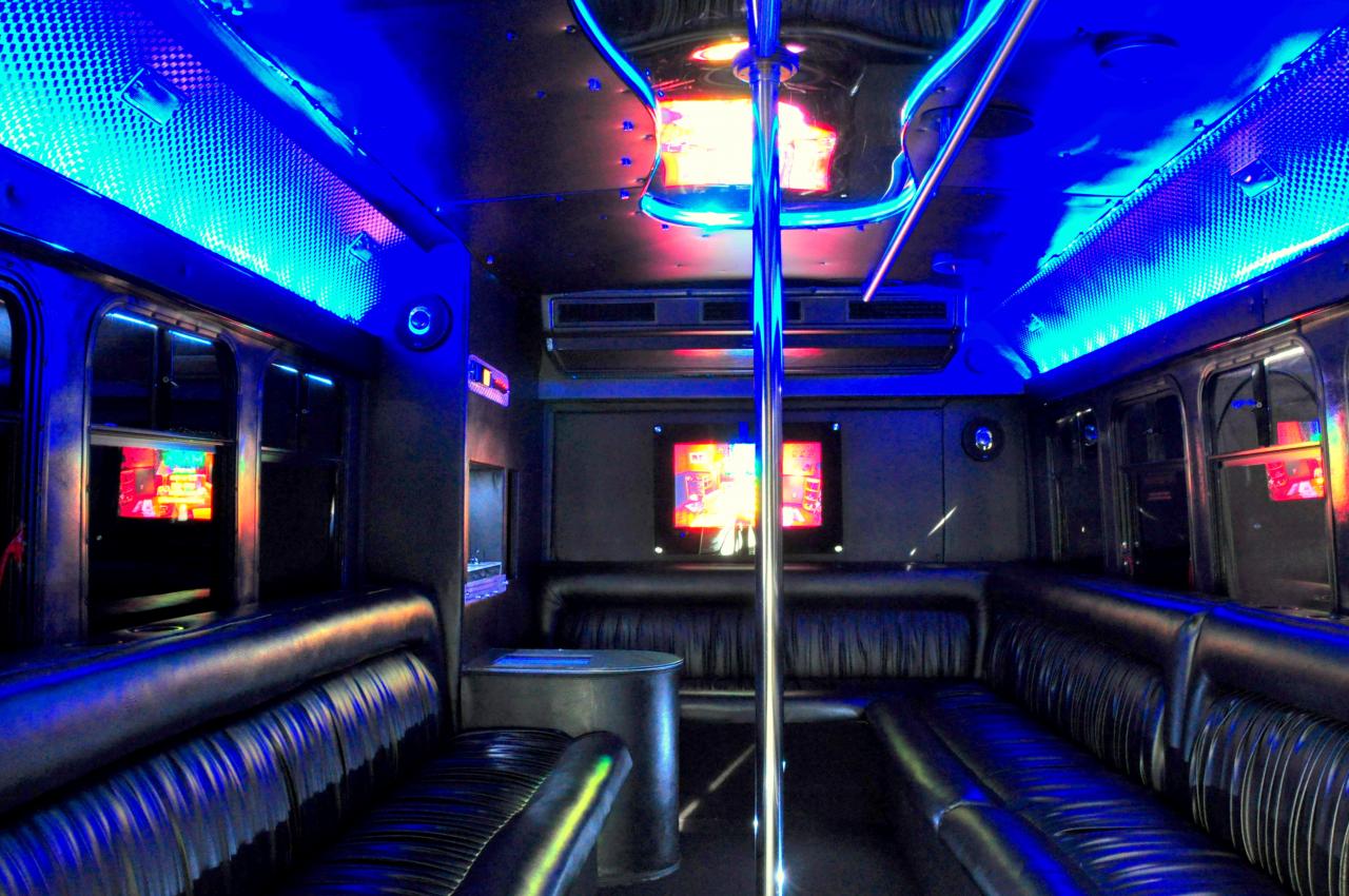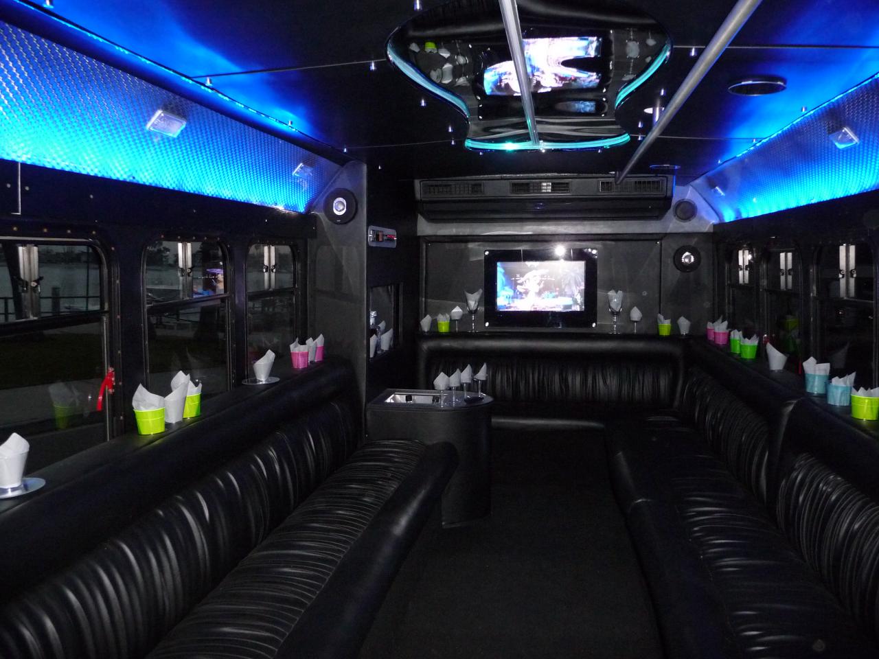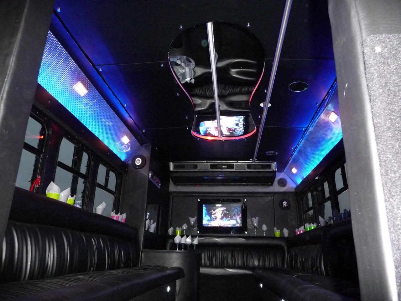 THIS IS ARE MOST POPULAR BUS! THIS BUS HAS A GREAT SOUND SYSTEM / TV / DANCEPOLE AND HAND RAIL FOR DANCING OR WALKING AROUND THE CABIN! THIS BUS COMES WITH COMPLIMENTARY WATER & ICE!