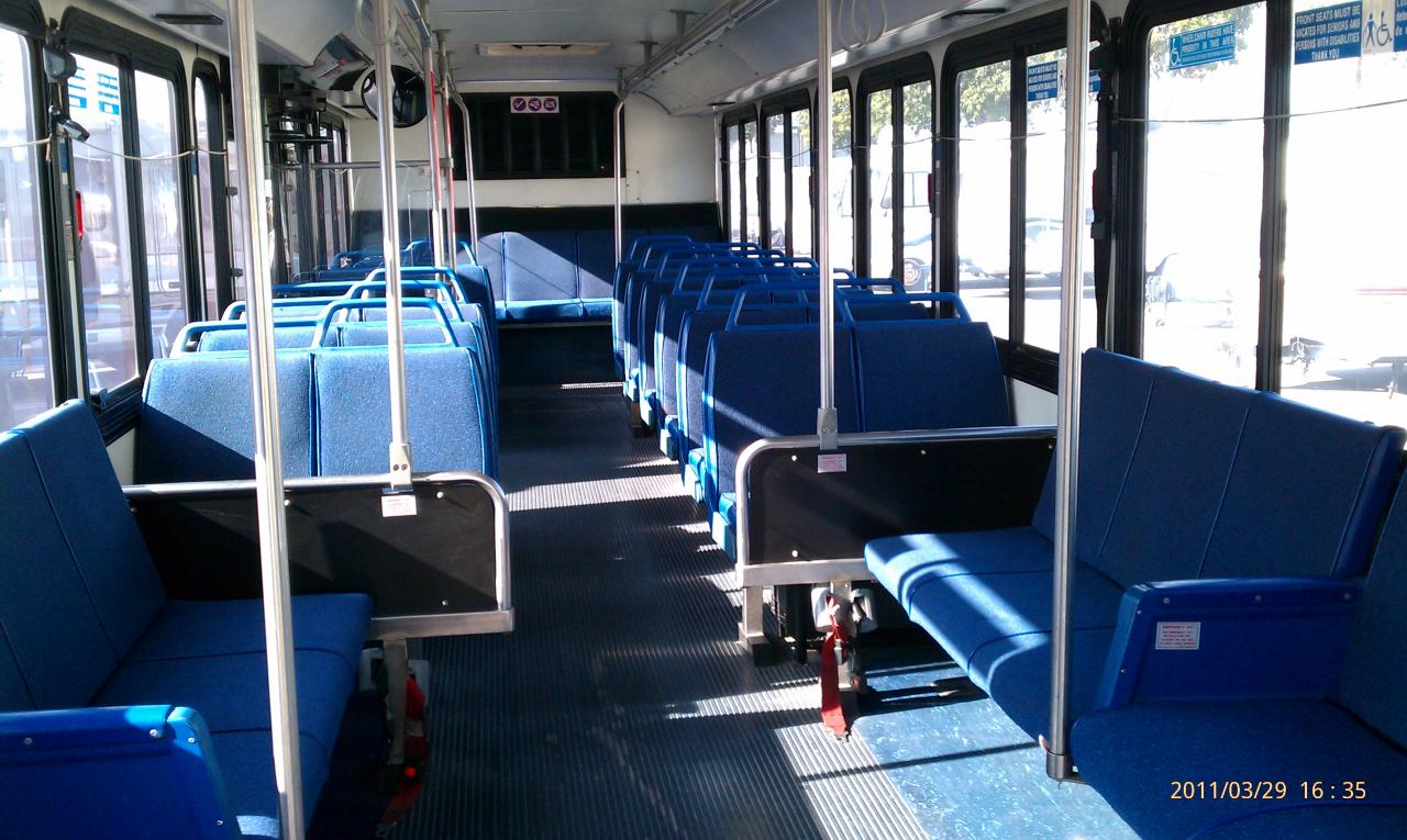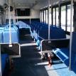 This bus seats 43 people and has 6 seats that fold up to make a huge dance floor!